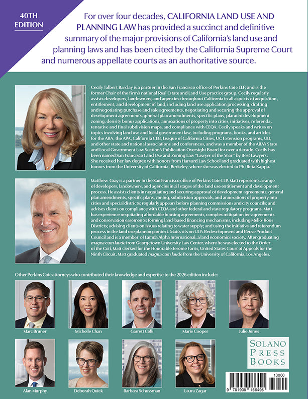 For over four decades, California Land Use and Planning Law has provided a succinct and definitive summary of the major provisions of California’s land use and planning laws and has been cited by the California Supreme Court and numerous appellate courts as an authoritative source.